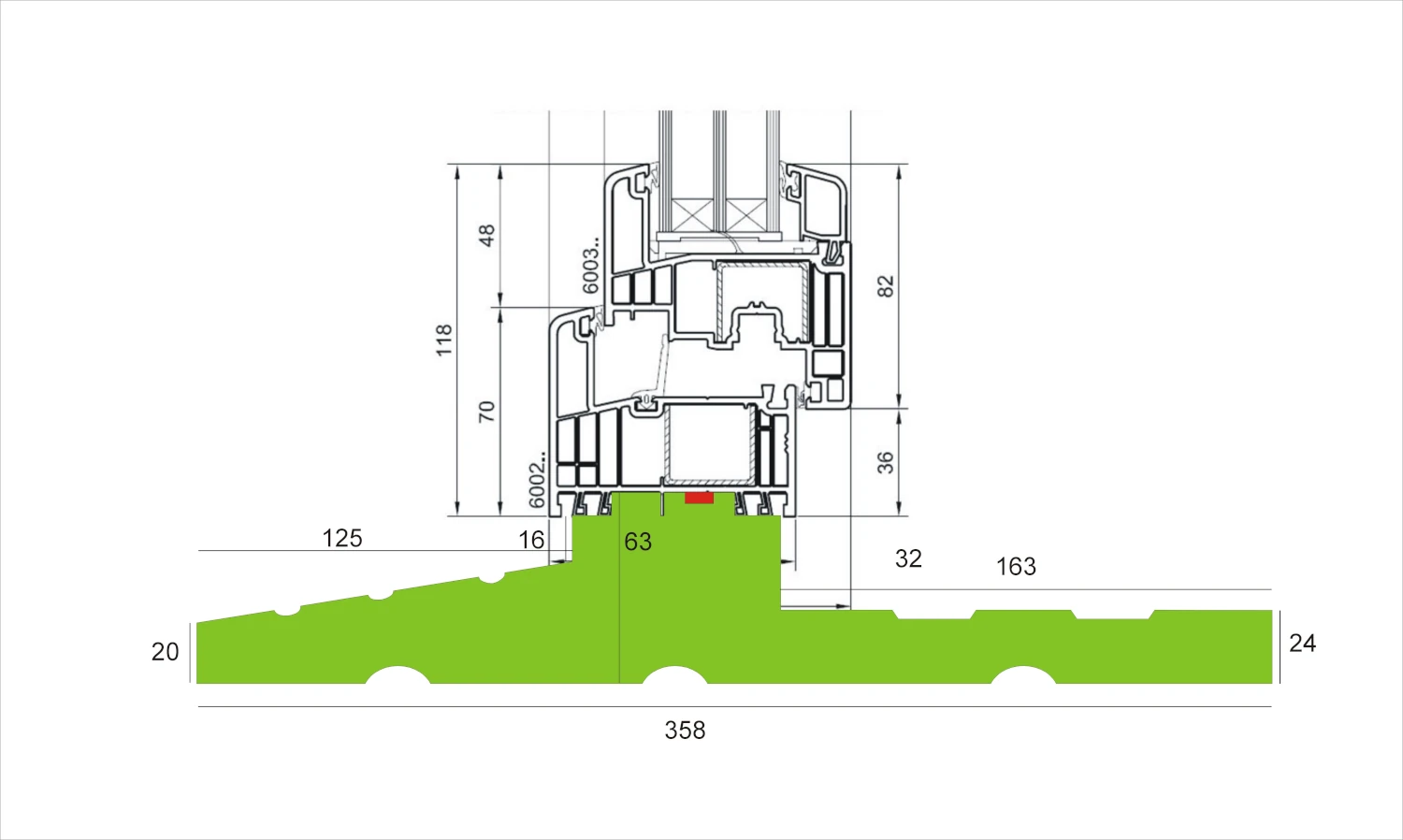 Profil doskonale izoluje i uszczelnia przestrzeń pod oknami i stanowi oparcie zarówno pod parapet wewnętrzny jak zewnętrzny, gdzie został wykształcony już spadku ok.7%-9%. Profile umożliwiają montaż najbardziej popularnych parapetów zewnętrznych z blachy lub aluminium oraz innych systemów jak i parapetów wewnętrznych grubości do 3 cm. Profile takie eliminują problem przedmuchów między oknem, a parapetem i likwidują powstawanie w tych miejscach mostków termicznych, ograniczają zatem w znaczący sposób straty ciepła i zapobiegają powstawaniu zawilgoceń. Profil może być nieznacznie modyfikowany w zakresie wymiarów zewnętrznych i wewnętrznych.