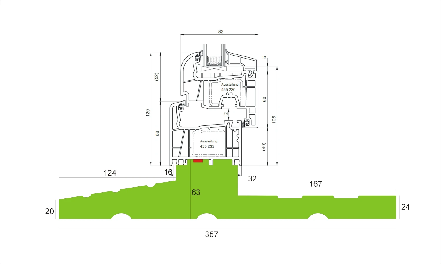 Ciepłe parapety do systemu okien Salamander Strimline 76 to dwustronne kształtki wykonane ze styroduru XPS CS3000 Basf-a odpowiednio wyprofilowane,które w zastosowaniu przy montażu okien umożliwiają znaczne poprawienie bilansu energetycznego budynku stosowane już powszechnie w domach pasywnych.Profil doskonale izoluje i uszczelnia przestrzeń pod oknami i stanowi oparcie zarówno pod parapet wewnętrzny jak zewnętrzny gdzie został wykształcony już spadku ok.7%-9%. Profile umożliwiają montaż najbardziej popularnych parapetów zewnętrznych z blachy lub aluminium oraz innych systemów jak i parapetów wewnętrznych grubości do 3 cm. Profile takie eliminują problem przedmuchów między oknem a parapetem i likwidują powstawanie w tych miejscach mostków termicznych, ograniczają zatem w znaczący sposób straty ciepła i zapobiegają powstawaniu zawilgoceń. Profil może być nieznacznie modyfikowany w zakresie wymiarów zewnętrznych i wewnętrznych. Oferujemy również profile alternatywne tj. nie tylko ciepłe parapety dwustronne ale również jednostronne / np. do okien piwnicznych gdzie z reguły nie montuje się parapetów wewnętrznych lub zewnętrznych/ czy profile pod same ramy okien a zwłaszcza drzwi różnego typu. Kolorem czerwonym na rysunku przekroju oznaczono miejsce wklejenia taśmy rozprężnej szer. 10 mm podczas montażu.