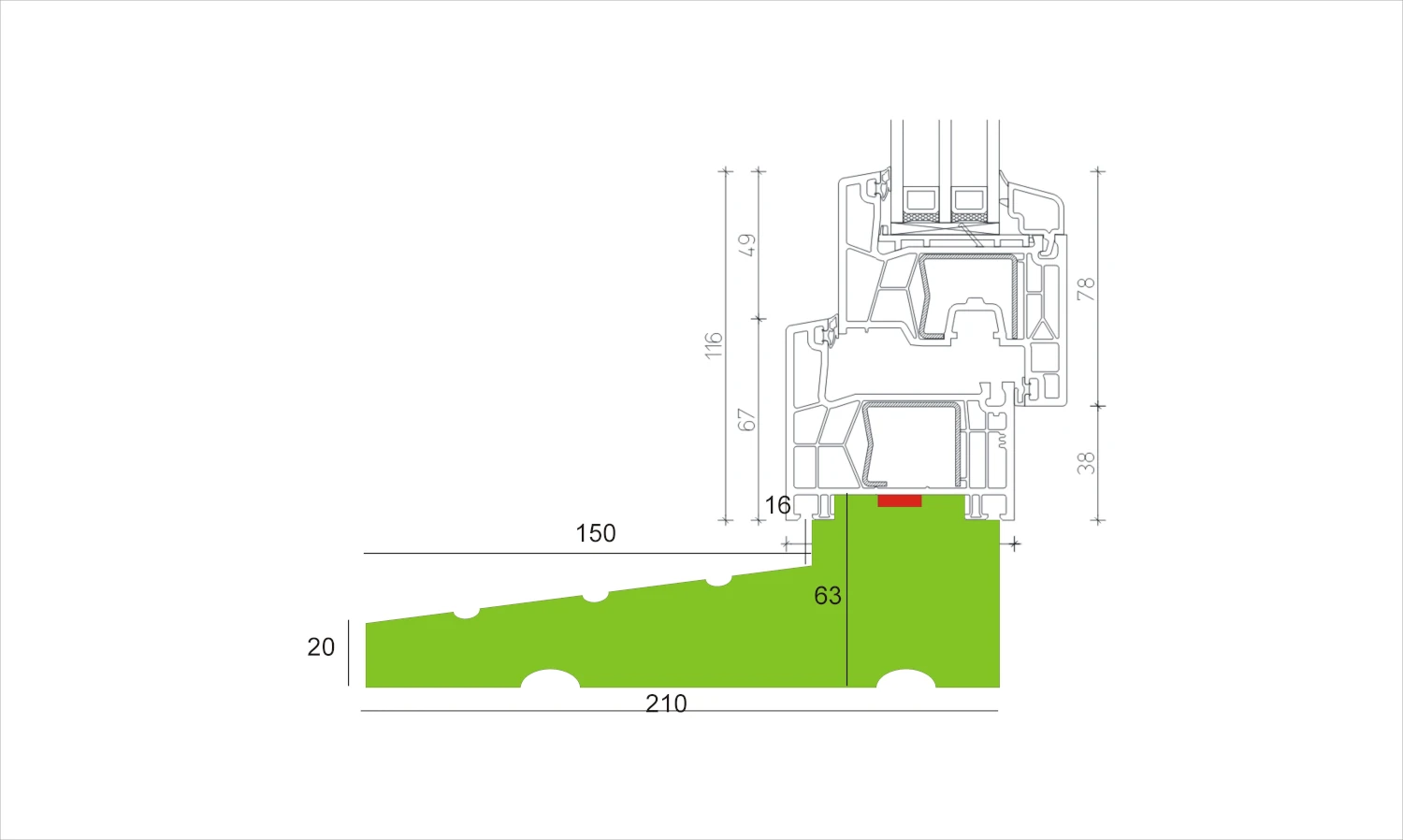 Profil doskonale izoluje i uszczelnia przestrzeń pod oknami. Stosowany pod ramę okienną i stanowi oparcie pod parapet zewnętrzny, gdzie został wykształcony już spadku ok.7%-9%. Profile umożliwiają montaż najbardziej popularnych parapetów zewnętrznych z blachy lub aluminium oraz innych systemów i parapetów wewnętrznych o grubości ponadstandardowej. Profile takie eliminują problem przedmuchów między oknem, a parapetem i likwidują powstawanie w tych miejscach mostków termicznych, ograniczają zatem w znaczący sposób straty ciepła i zapobiegają powstawaniu zawilgoceń. Profil może być nieznacznie modyfikowany w zakresie wymiarów zewnętrznych.