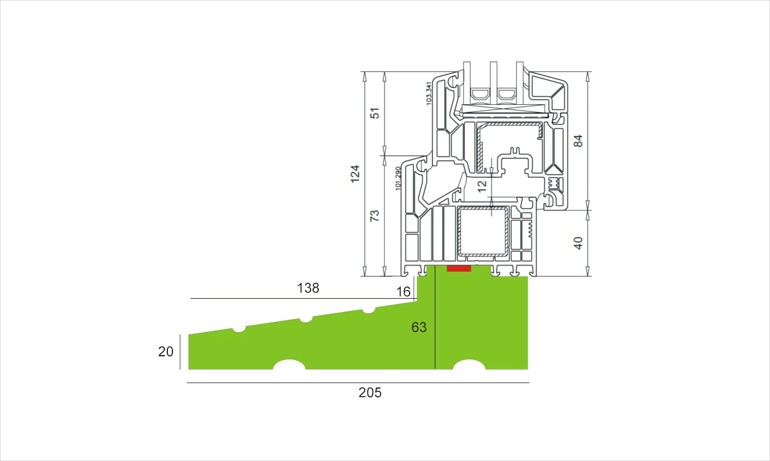 Profil doskonale izoluje i uszczelnia przestrzeń pod oknami. Stosowany pod ramę okienną i stanowi oparcie pod parapet zewnętrzny, gdzie został wykształcony już spadku ok.7%-9%. Profile umożliwiają montaż najbardziej popularnych parapetów zewnętrznych z blachy lub aluminium oraz innych systemów i parapetów wewnętrznych o grubości ponadstandardowej. Profile takie eliminują problem przedmuchów między oknem, a parapetem i likwidują powstawanie w tych miejscach mostków termicznych, ograniczają zatem w znaczący sposób straty ciepła i zapobiegają powstawaniu zawilgoceń. Profil może być nieznacznie modyfikowany w zakresie wymiarów zewnętrznych.